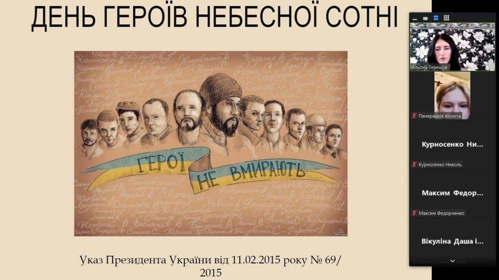 День Героїв Небесної Сотні − пам'ятний день, що відзначається в Україні 20 лютого на вшанування подвигу учасників Революції Гідності (листопад 2013 року − лютий 2014 року) та увічнення пам'яті Героїв Небесної Сотні − відважних співвітчизників, які ціною власного життя дали можливість Україні бути незалежною, демократичною, відкритою...